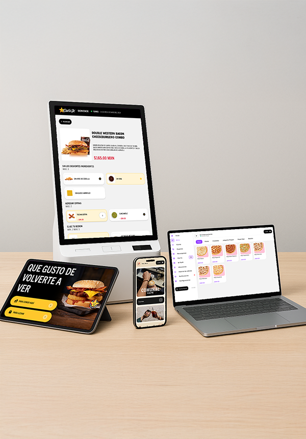 Pedidos rápidos y sin contacto desde pantallas táctiles. Integración con tu programa de lealtad y A.I. para personalizar la experiencia.
