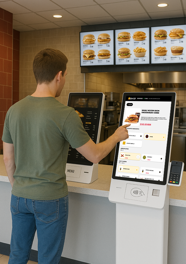 Pantallas táctiles interactivas para pedidos fáciles y rápidos.